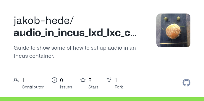 Command on the other hand would look like this: incus config device add <instance_name> PulseSocket1 proxy bind=instance listen=unix:/home/username/pulse-socket connect=unix:/run/username/1000/pulse/native security.uid=1000 security.gid=1000 uid=1000 gid=1000 mode=0777