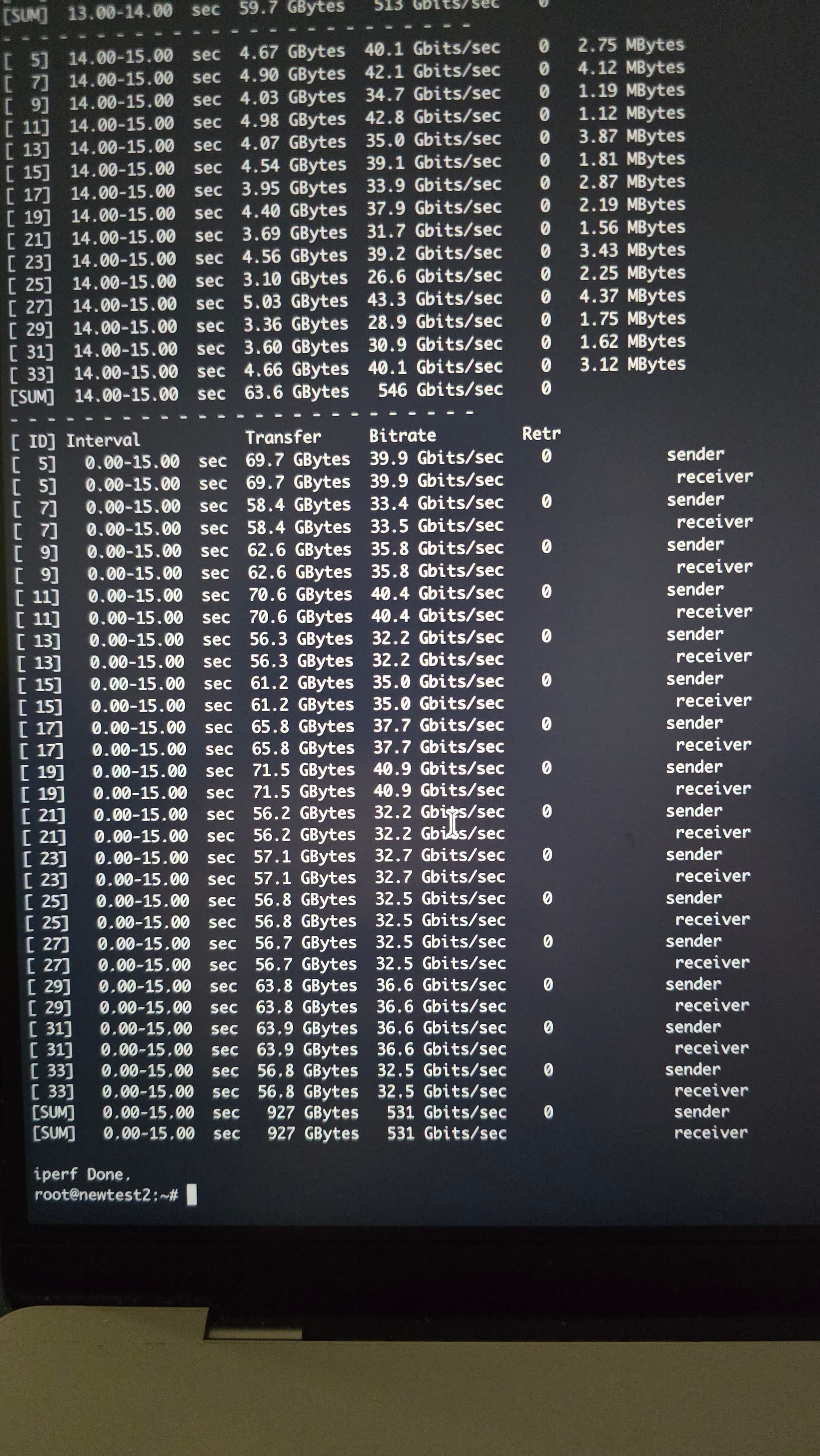 anyways here’s my iperf3 results i ran with 15 parallel streams for 15 seconds … I’d love any input on this.