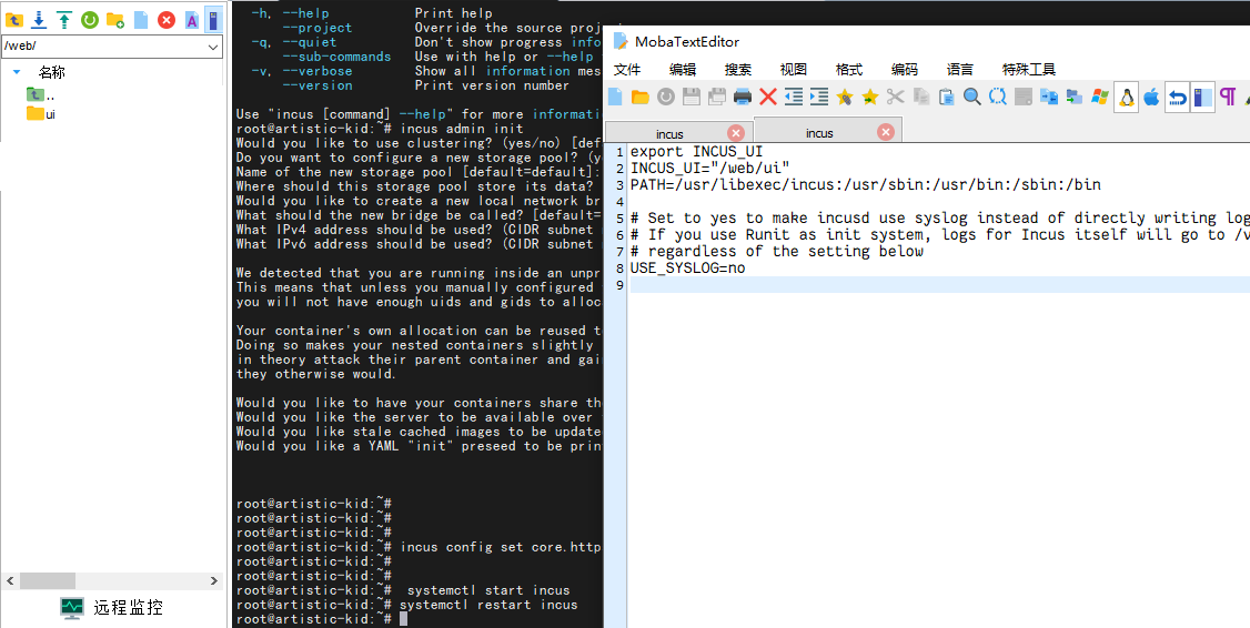 Alpine can use a manually compiled WEBUI by specifying the webui location through modifying the /etc/conf.d/incusd file. How do you set this up or modify it in Debian?