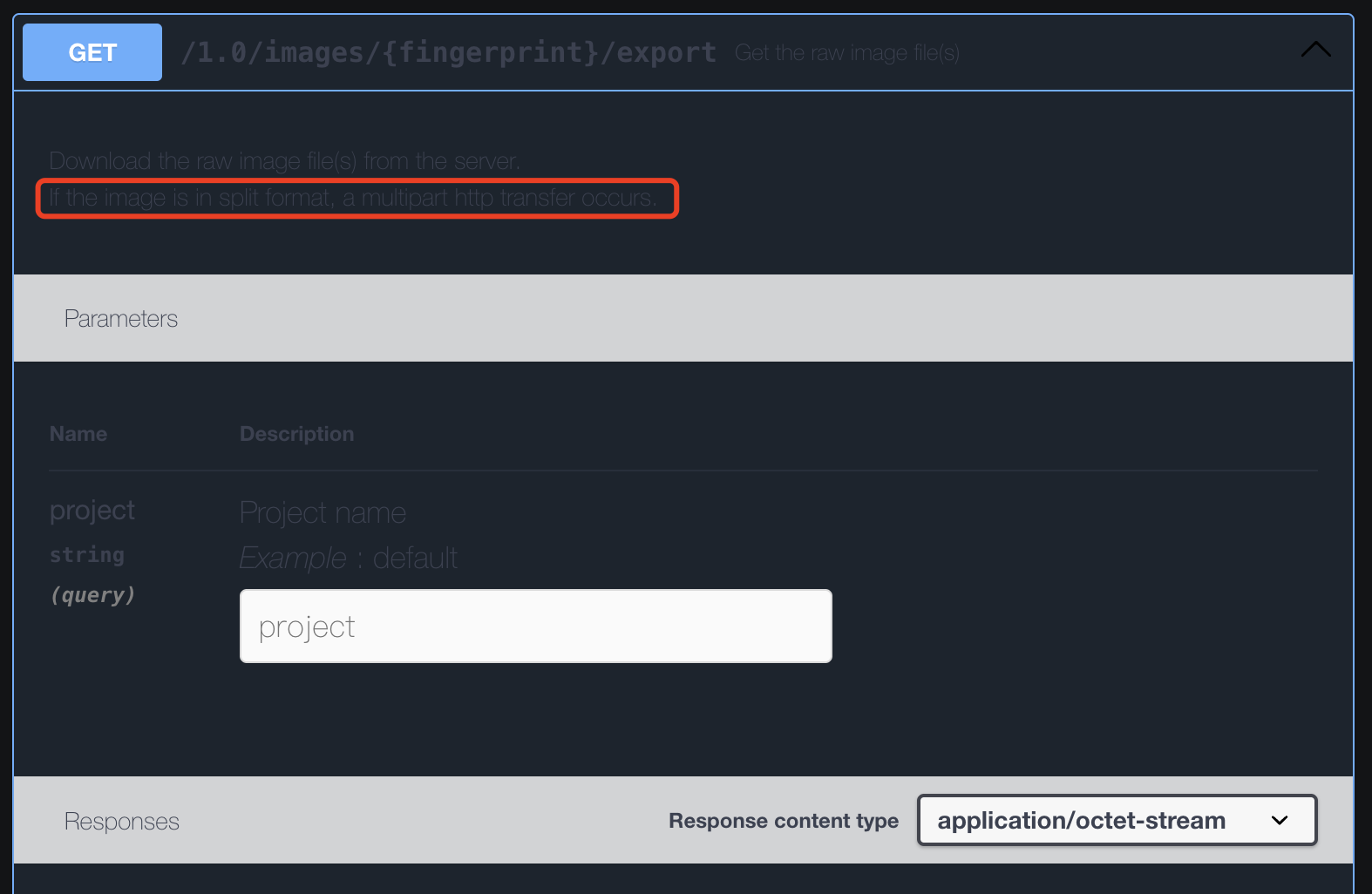 It’s a bit trickier with split images as for those you need to use a multipart http request with the correct filenames. For that case, the content-type becomes multipart/form-data and the two parts (form name) are metadata and rootfs (container) or rootfs.img (VM).