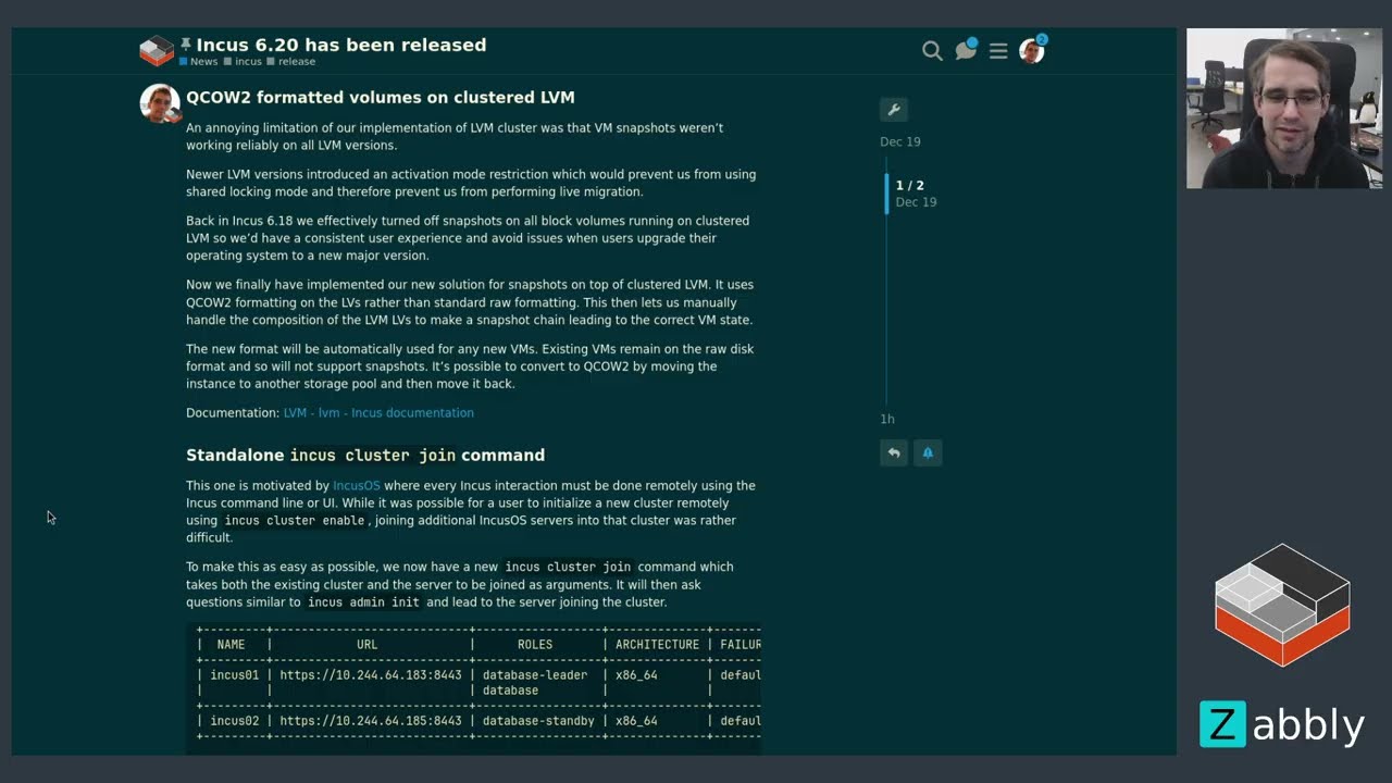 To make this as easy as possible, we now have a new incus cluster join command which takes both the existing cluster and the server to be joined as arguments. It will then ask questions similar to incus admin init and lead to the server joining the cluster.