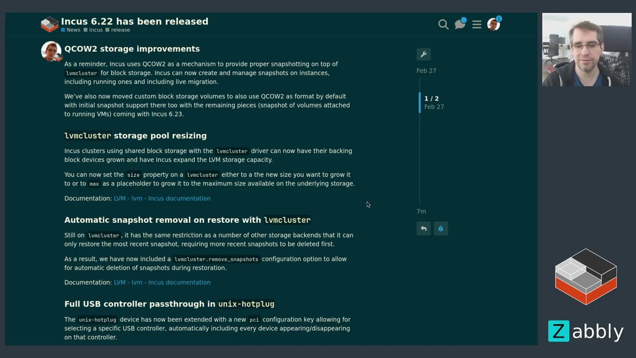We’ve also now moved custom block storage volumes to also use QCOW2 as format by default with initial snapshot support there too with the remaining pieces (snapshot of volumes attached to running VMs) coming with Incus 6.23.