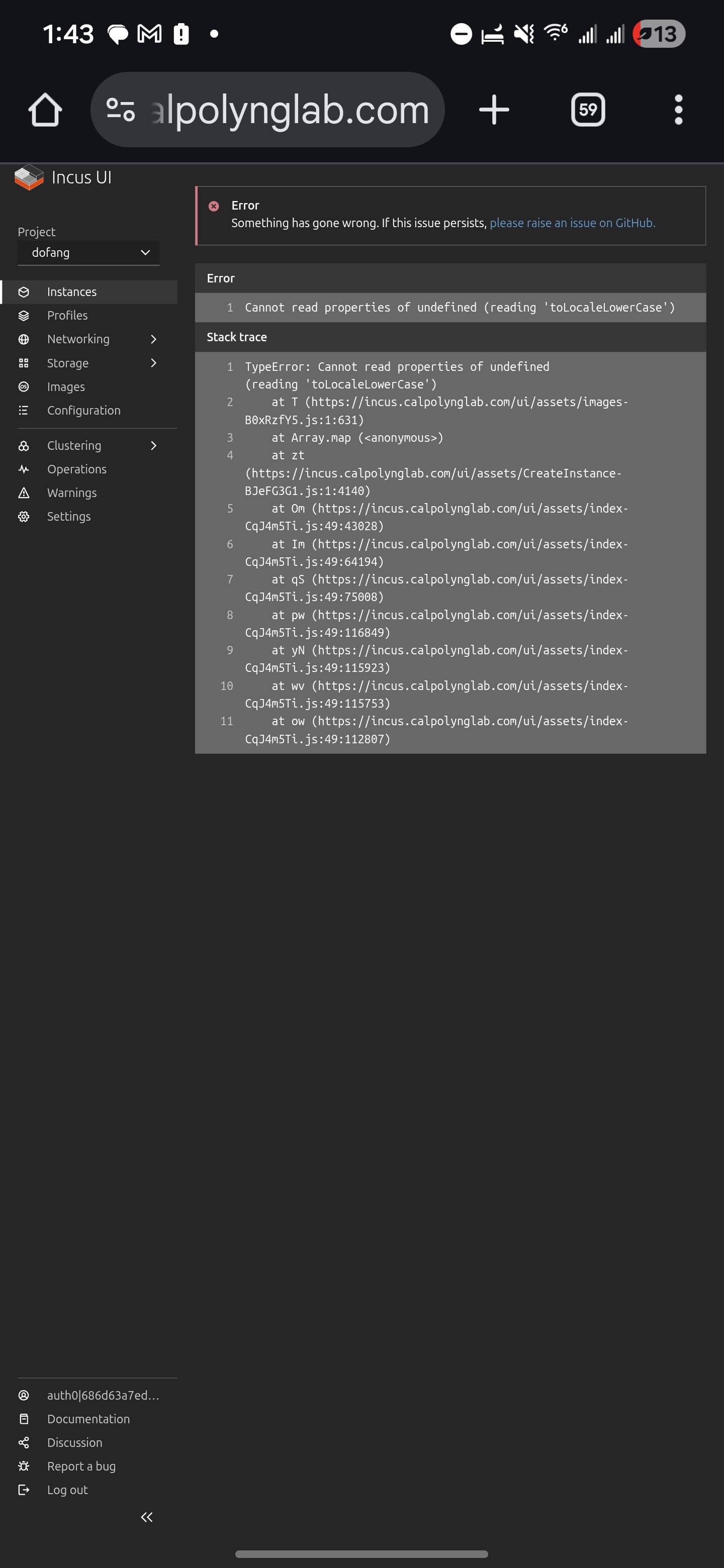 So i get this weird error as of the last update when i use the incus ui instance page.. the moment i click on the browse images button i get this odd error, like the one i pasted in the link above.