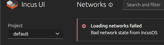 When I try to show network information via the incus cli commandincus admin os system network show the response is: