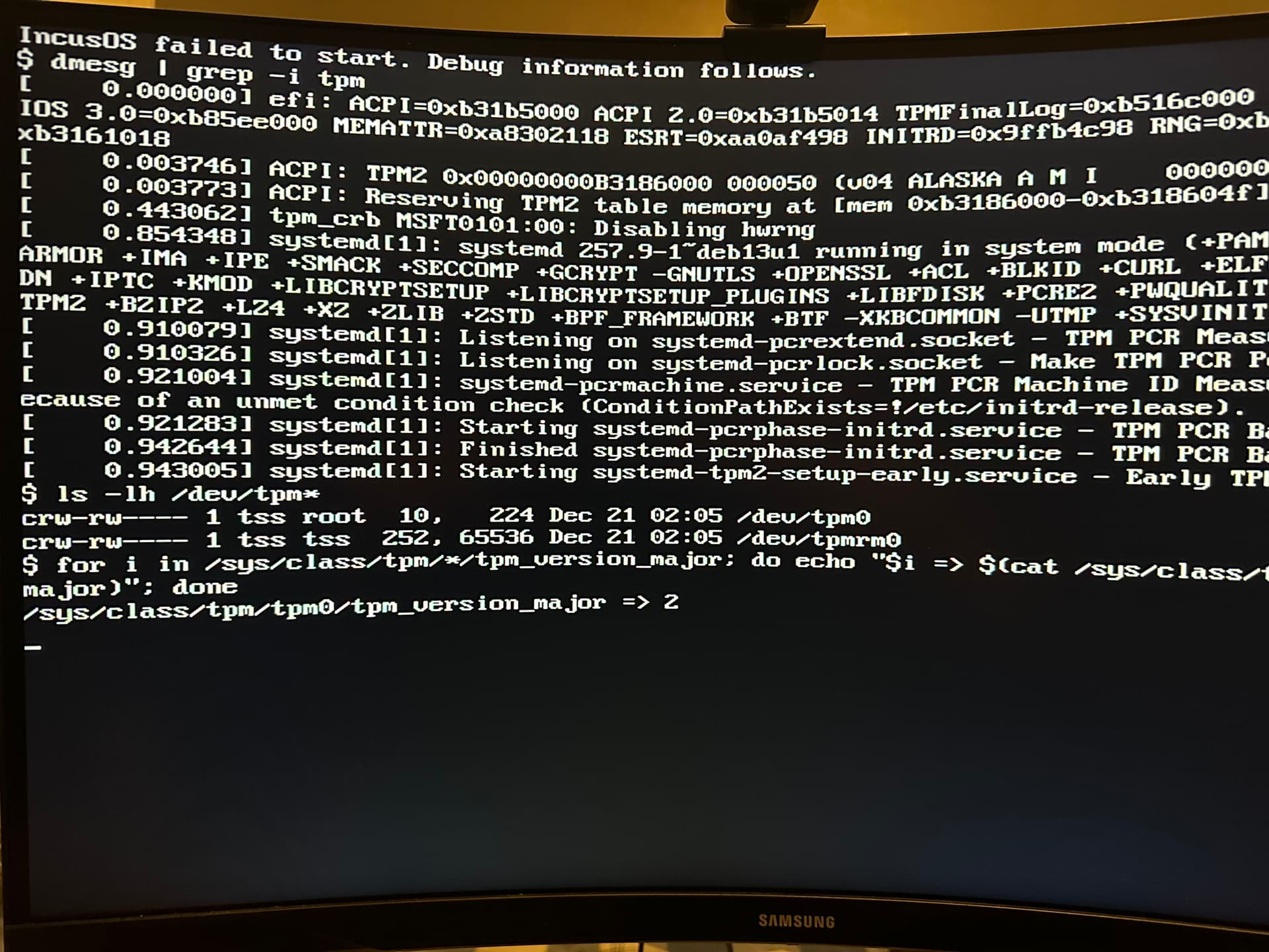 Hi, after playing around with Incus OS on some server grade hardware, I am trying to install on a real consumer grade hardware. Enabling TPM2.0 and installing Secure Boot Certifcates worked without a problem, normal Debian 13 installation using secure boot also not a problem. Also no strange RAID etc. config in Bios, everything set to standard AHCI.
