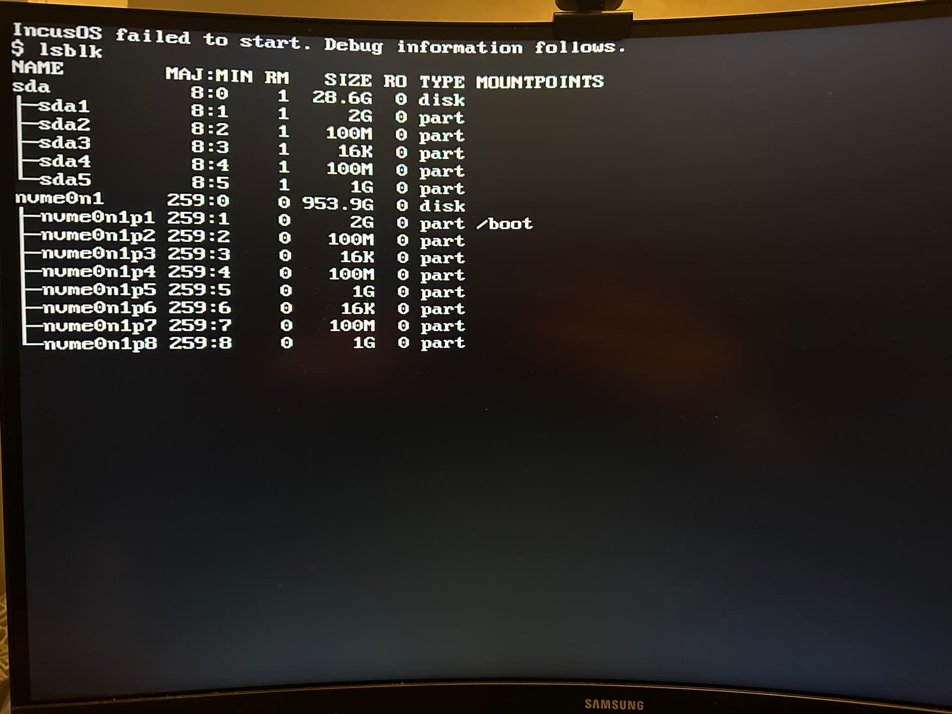 Now the problem: I do not get passed over the “Incus is starting…” message. I would expect Incus OS to do the initial installation, but nothing happens. Have waited more than 4 hours. Always stuck here. No matter what disk I configure as installation target (ssd or nvme or hdd) or even via “Operation mode” from an USB SSD.