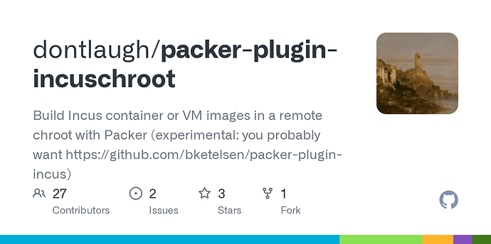 Brian, maybe add topic tags to the GitHub repo? I feel like literally searching “incus packer” should return your repo. Repository search results · GitHub