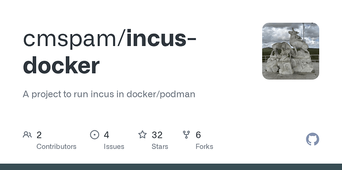 The built image is quite large, at just over 1GB, but everything works quite well with VMs and containers, web ui, and management using the incus binary. Actually, one would not notice it’s in a container. When things are more stable with alpine, I believe the size can be reduced significantly by moving to alpine instead of debian.
